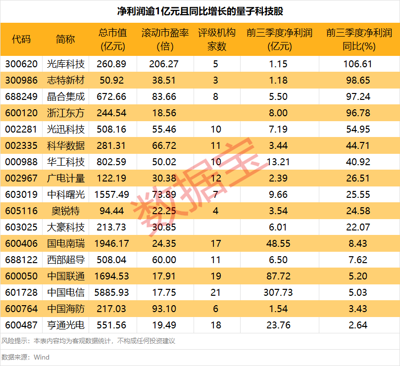 数据宝同时梳理了2025年前三季度净利润逾1亿元,且同比实现稳定增长的量子科技概念股,共计17股。光库科技实现翻倍增长,净利润同比增幅106.61%;志特新材、晶合集成、浙江东方3股紧随其后,净利润同比增长均在95%以上。